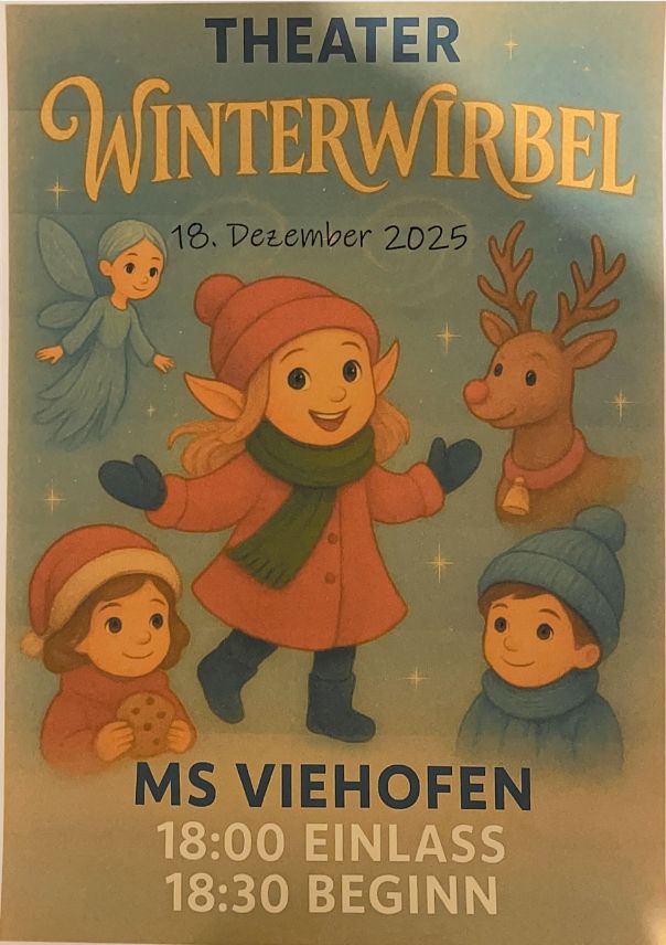 Winterwirbel ist ein fantasievolles Theaterstück voller winterlicher Magie, humorvoller Figuren und warmer Botschaften. Liebevoll inszeniert und mit viel Spielfreude entsteht eine zauberhafte Winterwelt auf der Bühne. Wir sind bereits fleißig am Proben und freuen uns darauf, diesen besonderen Winterwirbel am 18.12.25 präsentieren zu dürfen.